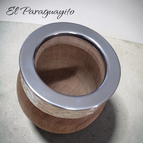 Mate de algarrobo modelo imperial con virola de acero inoxidable, macizo y de gran interior.