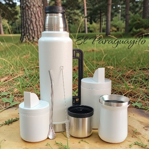 - Yerbero y azucarero de acero inoxidable, con tapa dosificadora de plástico muy resistente.